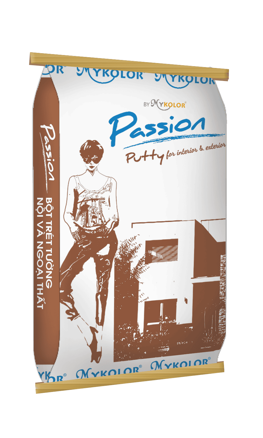 Bột trét tường ngoại và nội thất mykolor passion - Mykolor passion for Interior & Exterior được dùng làm phẳng các bề mặt hồ vữa hay bê tông trước khi sơn lót. Với sự kết hợp từ thành phần keo và các hợp chất chuyên dụng, tạo nên sản phẩm bột deo, mịn và dễ lấp đầy các lỗ hổng do hồ tô tạo ra, thích hợp cho các công trình tường ngoại thất và nội thất. Đáp ứng được nhu cầu thẩm mỹ cao cho các công trình cao cấp. Thích hợp cho các loại sơn mang nhẫn hiệu Mykolor Passion.